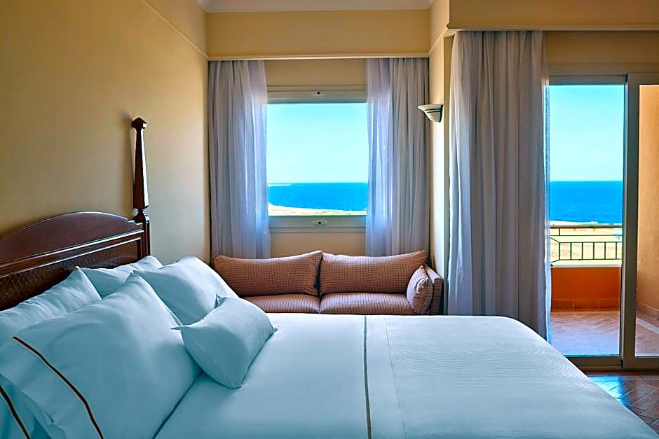 Featuring a private balcony with Golf and Sea view, this air conditioned room a Tea & Coffee tray with an electric kettle.